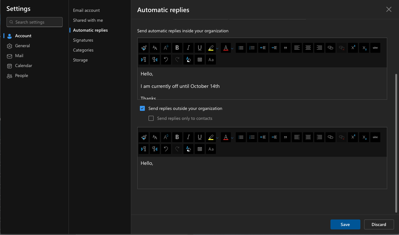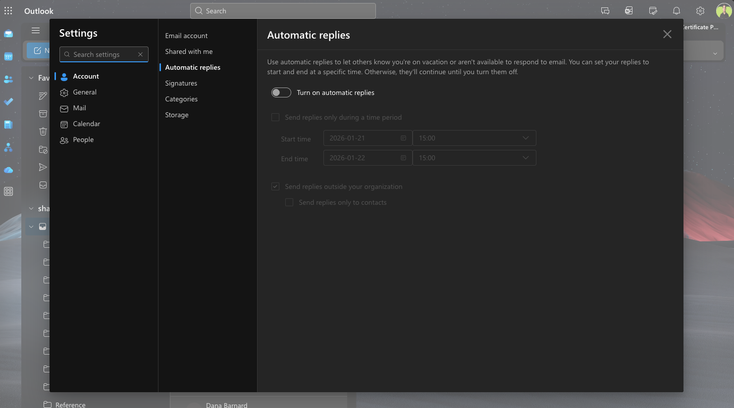 - Turn on Automatic Replies